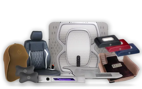 From handcrafted seat covers that redefine elegance to multi-axis luxury mats designed for maximum protection and style, and from ergonomic comfort add-ons like recliner seats and memory foam cushions to premium accessories such as LED roof lights, Go Buddy trays, and doorstep guards — our collection ensures that every detail of your car reflects your personality.